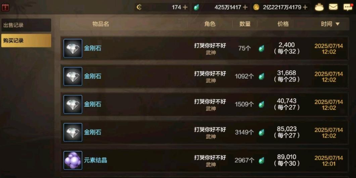最近有玩家发现自己上架拍卖行的这个金刚石和元素结晶等材料竟然全被拍下来了,要知道这之前这名玩家卖了很久都没有卖出去的,结果12点左右全被秒了,这也是让这名玩家感觉到了不对劲。毕竟这些材料在下个版本基本上没有什么作用了,即将被淘汰的存在,按理来说是无人问津的。