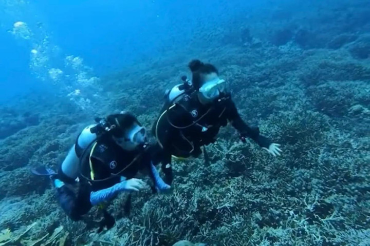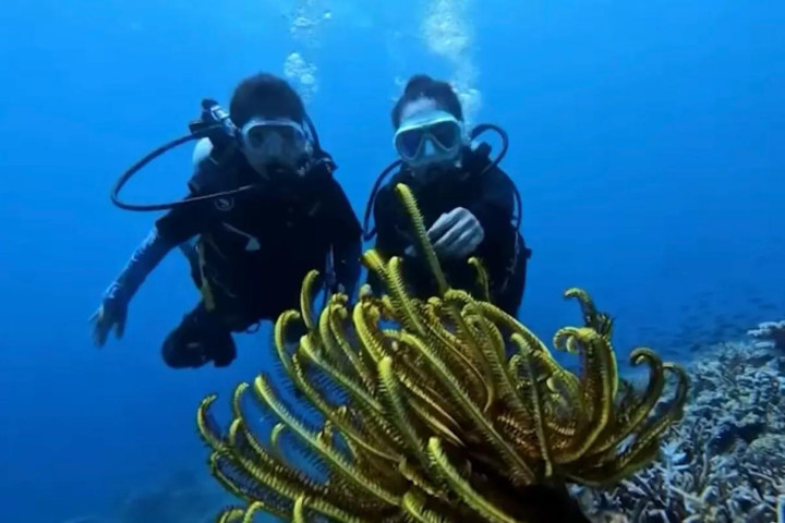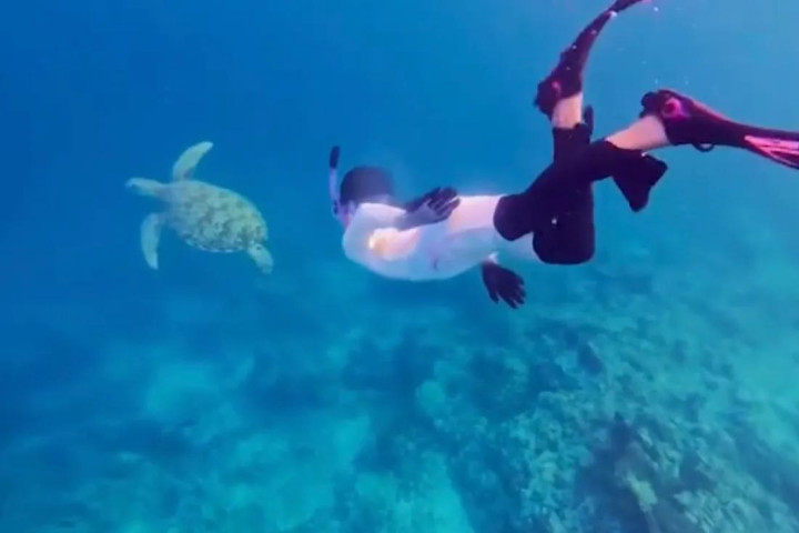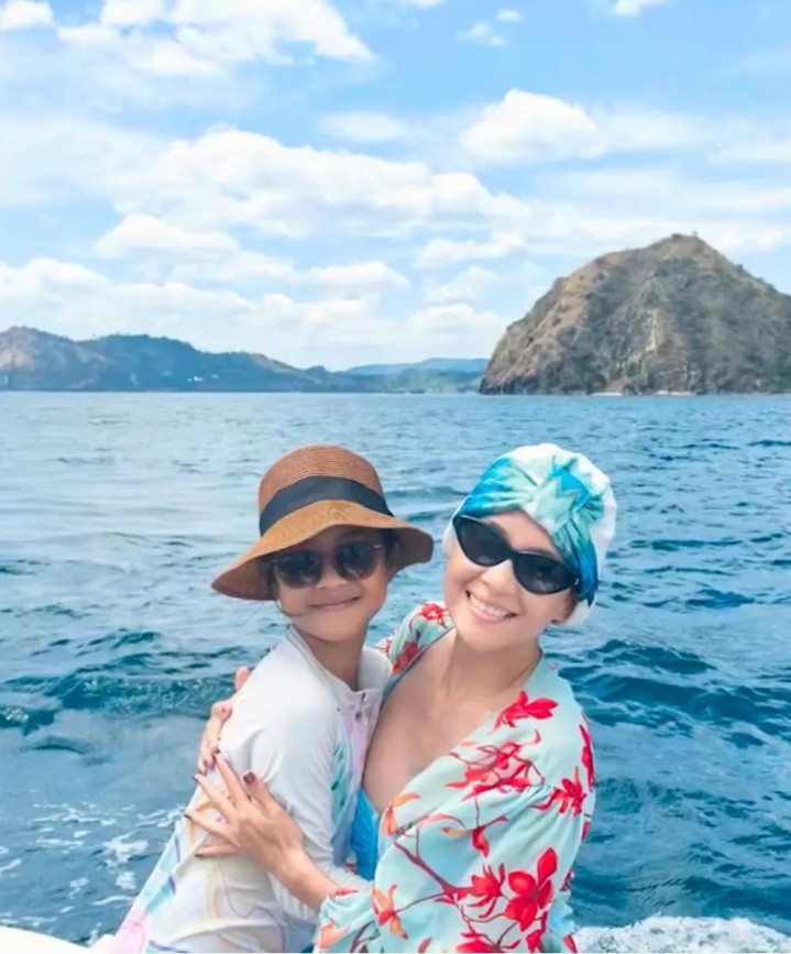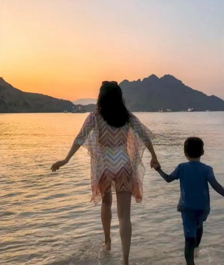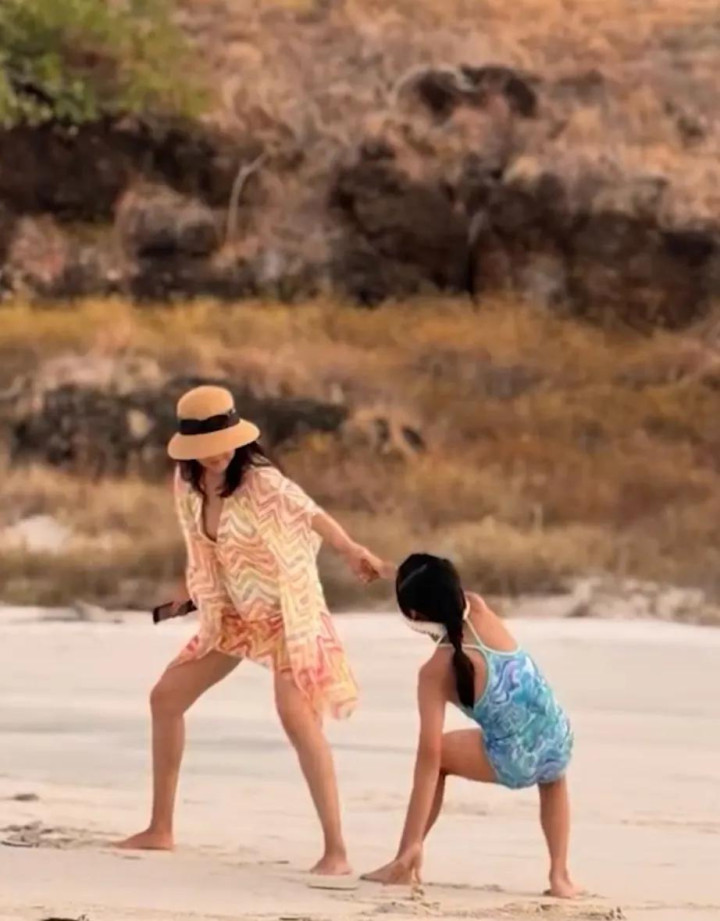 章子怡七夕带儿女欢乐出游, 9岁醒醒潜水似美人鱼, 5岁儿子像妈妈