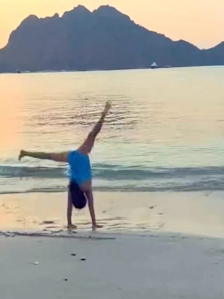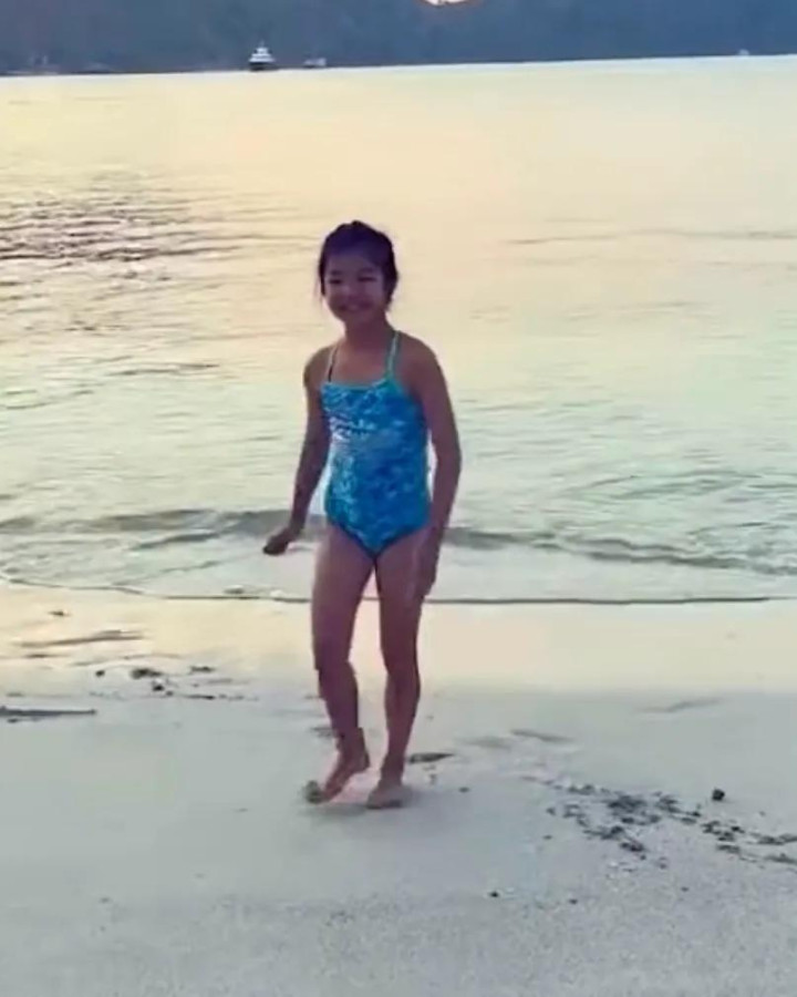醒醒还在海边表演了翻跟头,而且连续翻了好几个,最后稳稳落地站稳,一脸灿烂笑容看向妈妈,轻轻松松就完成,真的太厉害啦,感觉很有舞蹈天赋呢。