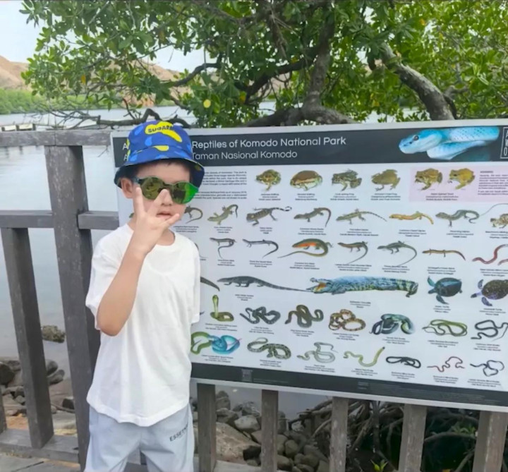 章子怡很少晒出儿子的正脸照,这次小帅哥难得正脸出镜,还对着镜头比出一个酷酷的手势,虽然手遮住了脸,但也能隐隐约约看出很像妈妈,特别是鼻子,很漂亮。